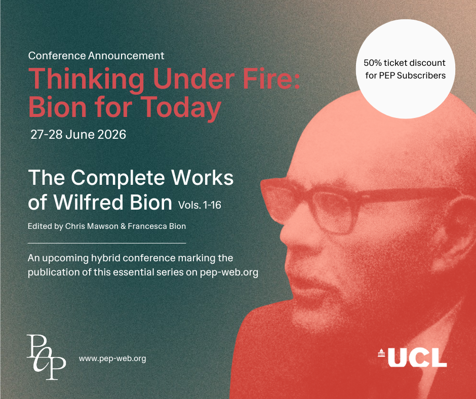 The publication of “The Complete Works of W. R. Bion” in 2014, edited by Chris Mawson in consultation with Francesca Bion, was a milestone in Bion scholarship. The release of this essential series on PEP in 2026 creates further exciting opportunities for exploration of and dialogue with his work.