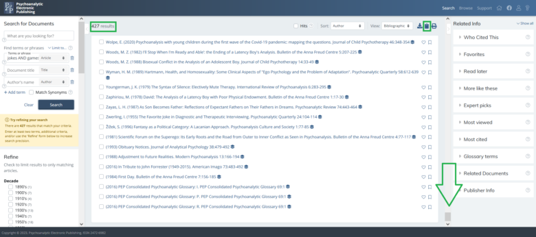 Despite not being able to read the article on PEP-Web, this can be useful for researchers, because the article’s bibliographic reference will be included along with other search results when the specified criteria match.