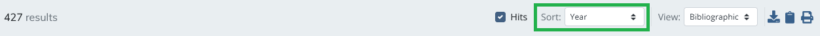 Note that article results can be organised using the different “Sort” filters at the top, e.g., by Author, Year, Title, Source, etc.