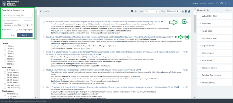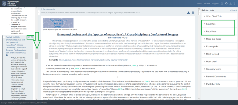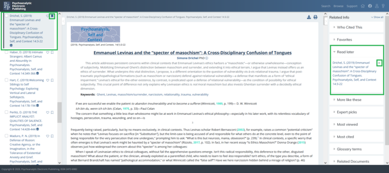Despite not being able to read the article on PEP-Web, this can be useful for researchers, because the article’s bibliographic reference will be included along with other search results when the specified criteria match.